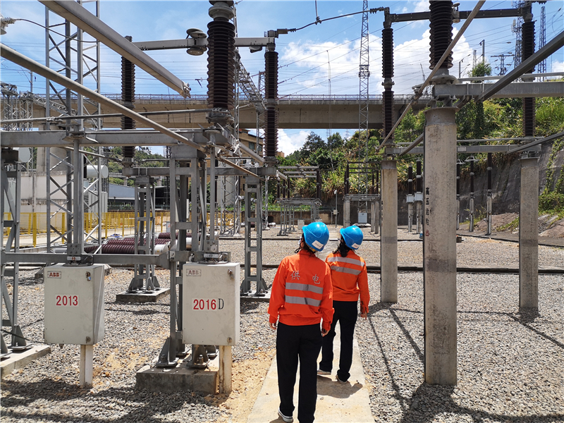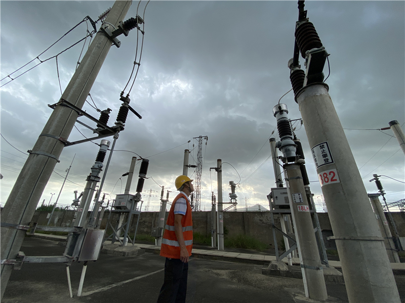 南铁福州供电段变电值班员在台风前巡视检查牵引变电设备。 郭涛 摄 |