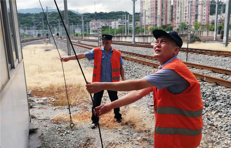 南铁福州动车段加强对动车组受电弓的检查养护。 赵阳 摄 东南网8月3日讯(本网记者 冯川叶 通讯员 丁波)记者从中国铁路南昌局集团有限公司获悉,为了应对台风“黑格比”所带来的影响,中国铁路南昌局集团有限公司安排专人24小时密切关注天气预报预警信息,盯控雨量监测系统,运用卫星云图、雷达图动态掌握降雨趋势、台风动态,及时对强降雨和可能发生灾害的区段进行预警。同时,南铁还组织人员加强对铁路沿线广告牌、声屏障等进行排查,并重点监控防洪薄弱地段,按照线路降雨量进行巡查、巡守。 南铁管内福建地区各车站采取增开退改签窗口,加强站内扶梯、天桥、地道、站台等处所引导,增设防滑措施和设置防滑提示等方式,强化乘降组织,确保旅客出行安全。福州火车站、福州车务段组织人员对车站候车室玻璃门、指示牌等设备设施进行全面排查与加固,福州工务段对沿线抢险材料机具进行堆码,加固施工挡板,对应急设备及料具进行清点调试,确保应急设备状态良好。福州供电段、福州电务段等单位组织人员对铁路牵引变电及行车信号设备进行巡检养护。福州动车段、福州车辆段、福州东车辆段加强列车及车辆整备,全力备战台风“黑格比”。 铁路部门将密切关注台风走向,根据风速雨情,动态调整管内列车运行,确保旅客列车运行安全。铁路部门提示,旅客可通过12306网站、车站大屏幕、广播公告等方式,及时掌握列车运行情况,合理安排行程。