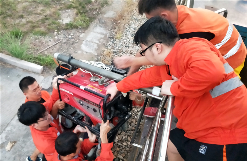 南铁福州供电段职工正在搬运应急抢修材料机具。林祖荣 摄