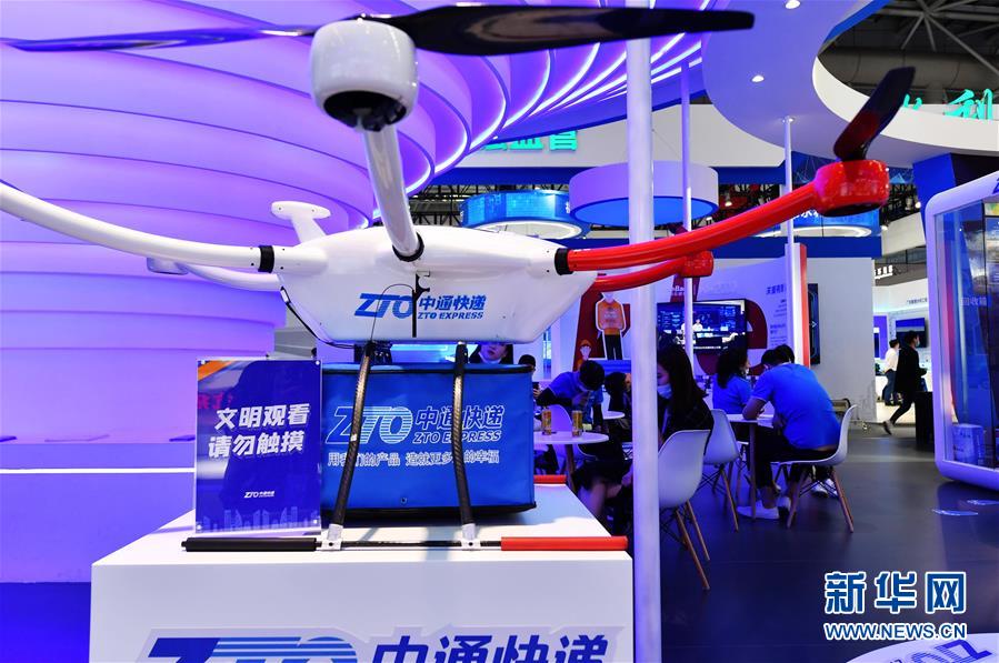 10月14日拍摄的数字中国建设成果展览会现场展示的快递无人机。新华社记者 魏培全 摄