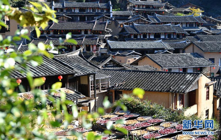 这是11月1日拍摄的桂峰村晒秋画面。 深秋时节,位于福建省三明市尤溪县洋中镇的桂峰村,古民居与晒匾里五彩缤纷的农作物,构成五彩斑斓的调色板,展现秋收风情。 新华社记者魏培全摄