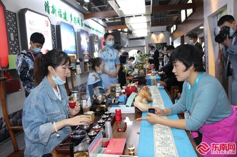 嘉宾在福建展演展示馆内品茶 东南网记者 卢金福 摄