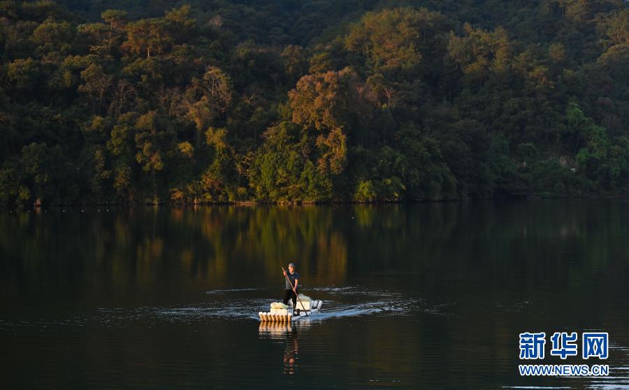 11月20日,常口村村民在村旁的金溪上划船。 常口村位于福建省三明市将乐县高唐镇。20多年来,常口村践行绿色生态发展理念,立足山、水、田的资源优势,探索出一条因地制宜、绿色发展的道路。2019年,村集体经济收入122万元,农民人均可支配收入2.36万元。常口村先后获评“全国民主法治示范村”“全国乡村治理示范村”等荣誉称号。 新华社记者 宋为伟 摄