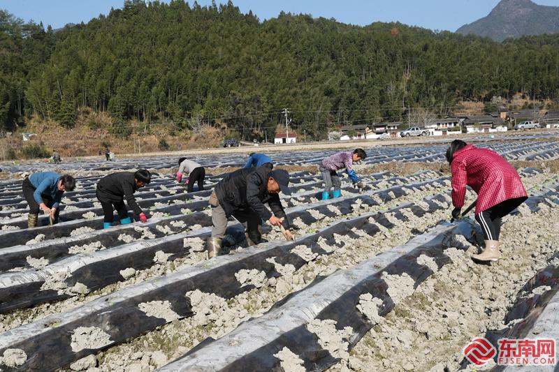 2月21日,福建武夷山市崇安街道村尾村农民在种植早春农作物。 邱汝泉 摄