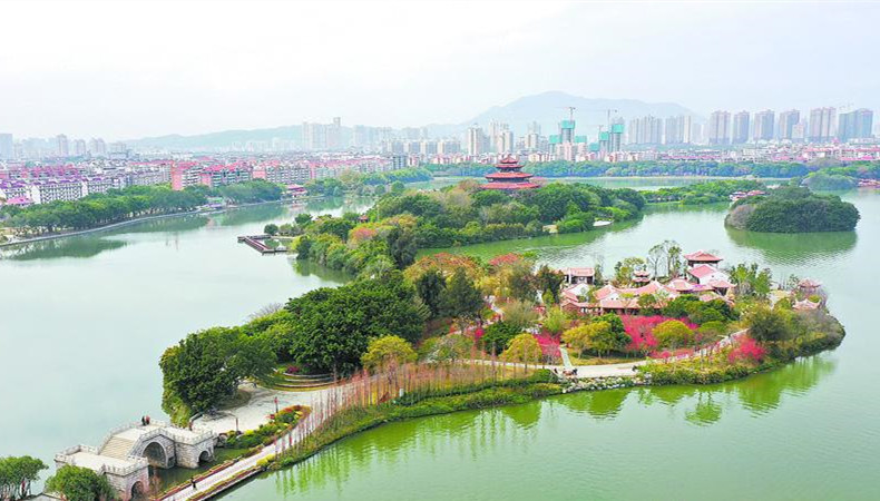 桃花与红灯笼相映成趣 春意枝头闹,桃花灼灼开。连日来,泉州西湖公园桃花岛的千株桃花竞相绽放,美不胜收,为元宵佳节增添了不少喜庆氛围。 桃花岛位于西湖公园东侧水域,与刺桐阁所在的小岛相连,占地面积约30亩。昨日上午10时许,记者来到时,不少市民徜徉其间,或有说有笑,或拍照留念。连片桃树开出了密密麻麻的桃花,与红灯笼交相辉映,一片喜庆。朵朵桃花千姿百媚、相互簇拥,引得众多小蜜蜂翻飞起舞。 据介绍,桃花岛原是一片荒岛。2019年年初,桃花岛建设及景观提升工程被列入泉州市重点项目,正式动工建设。作为湖中岛,其建设过程采用生态的闽南园林营造手法,以绿色生态环境为基底,通过在林中巧妙安排亭、台、楼、廊等园林建筑,植入名人诗词题刻、楹联匾额等,营造自然生态的闽南特色园林。此外,环岛遍植桃花,形成以桃花林为特色的花林景观,千株桃树与石榴、杨梅、香柚、梨树、朴树、芭蕉、桂花、含笑等乡土果树、花树搭配种植,或矗立小径两旁,或点缀于庭院中。历时一年多的精耕细作,桃花岛于2020年7月正式对外开放。 据公园工作人员介绍,眼下正值桃花盛开的季节,下星期有些就会谢了,千万不要错过。 (记者王金植 庄丽祥 文/图) |