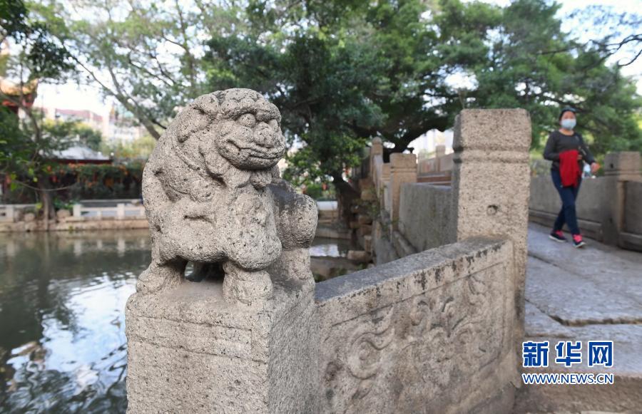 这是福州万寿桥上的石雕(2月21日摄)。新华社记者 林善传 摄