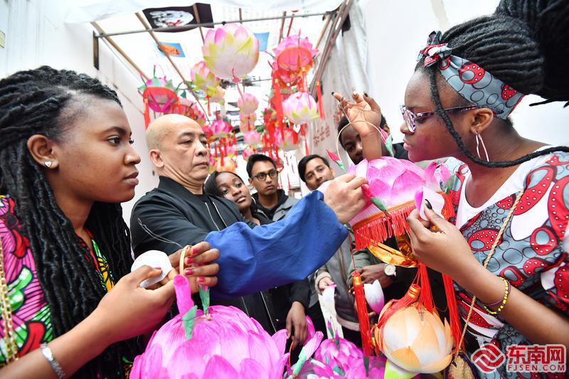 24日,元宵节将至,福州外语外贸学院来自利比里亚、尼泊尔等国的留学生走进福州三坊七巷,体验元宵花灯制作技艺,了解中国元宵节民俗,感受中华传统文化的魅力。福建日报记者 林辉 摄