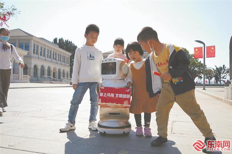 游客与AI机器人合影。福建日报记者段金柱 吴旭涛 通讯员 王晓霞 吴丹红 章盈旖 摄