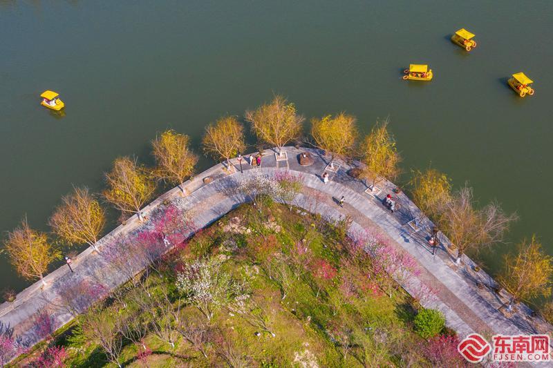 2月28日,在永春县岵山镇北溪文苑景区,200多亩桃花争相绽放,吸引众多游客前来观赏游玩。