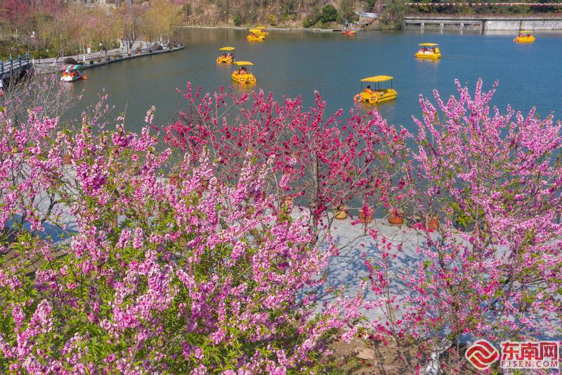 2月28日,在永春县岵山镇北溪文苑景区,200多亩桃花争相绽放,吸引众多游客前来观赏游玩。福建日报记者 林辉 通讯员 康庆平 摄