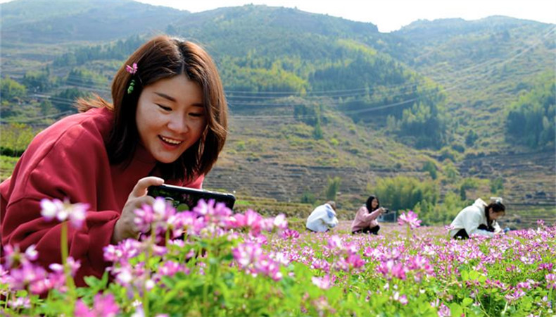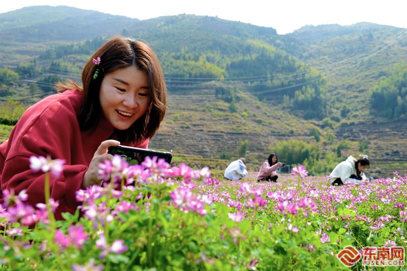 11日,在永春县锦斗镇锦溪村、珍卿村县级紫云英示范基地里,大片紫云英竞相绽放,吸引了众多游客。