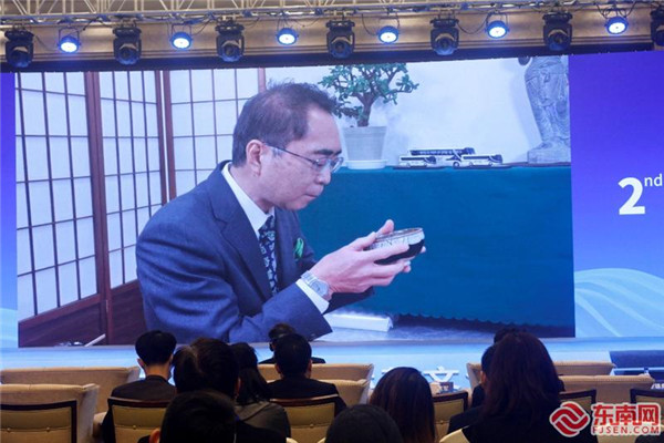 茶文化深度爱好者近藤阳一讲述中日两国茶文化的渊源与发展,东南网记者 林先昌摄 在东京分会场上,邀请了西武学园医学科技专门学校总校长、茶文化深度爱好者近藤阳一讲述中日两国茶文化的渊源与发展。 近藤阳一说道,不管是在日本还是在中国,茶在人们的日常生活中扮演着无法分割的角色,特别是绿茶和乌龙茶等,我们平时也和大家一起饮用。400年前,中国的茶文化传到日本,其中有一种叫作“抹茶文化”,抹茶一定会搭配料理一起,这种料理就叫做“普茶料理”,这些全部合在一起,就称作“茶道”文化。“茶道”文化在日本持续了400年。近藤阳一说:“非常希望在日本延续下来的抹茶文化,能够再次反向传回中国,日中两国在茶文化上能够有更多的交流。”