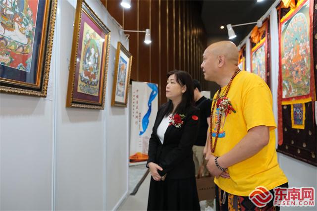 来宾观展 主办方供图 作为“中国书画五洲行”国际巡展 (香港站)的系列活动之一,《百岁使者——刘锦琳艺术展》《丝路佛缘书画展》的参展作品也达百余幅。刘锦琳从外交部离休后创作了大量代表中国传统文化的花鸟画,此次共展出代表作30余幅。《丝路佛缘书画展》共展出佛教界大德法师、护法居士、佛教学者和专家的作品80余幅,包括书法、国画和唐卡。